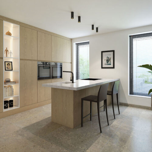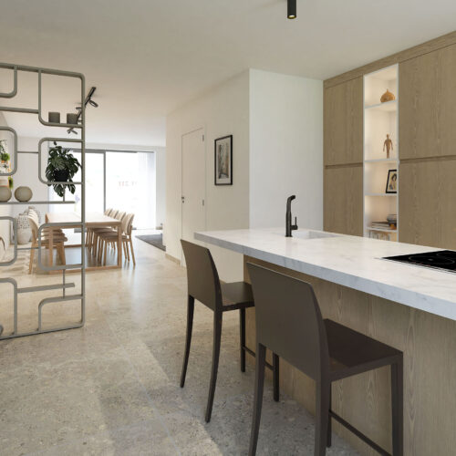 Elk appartement kan volledig naar eigen smaak worden ingericht en wordt afgewerkt met hoogwaardige materialen en een luxueuze uitstraling. Dankzij de geothermische warmtepomp geniet u van een bijzonder energiezuinige woonervaring, inclusief passieve koeling voor extra comfort in de zomer. Uiteraard voldoen alle wooneenheden aan de strengste hedendaagse EPB-normen.