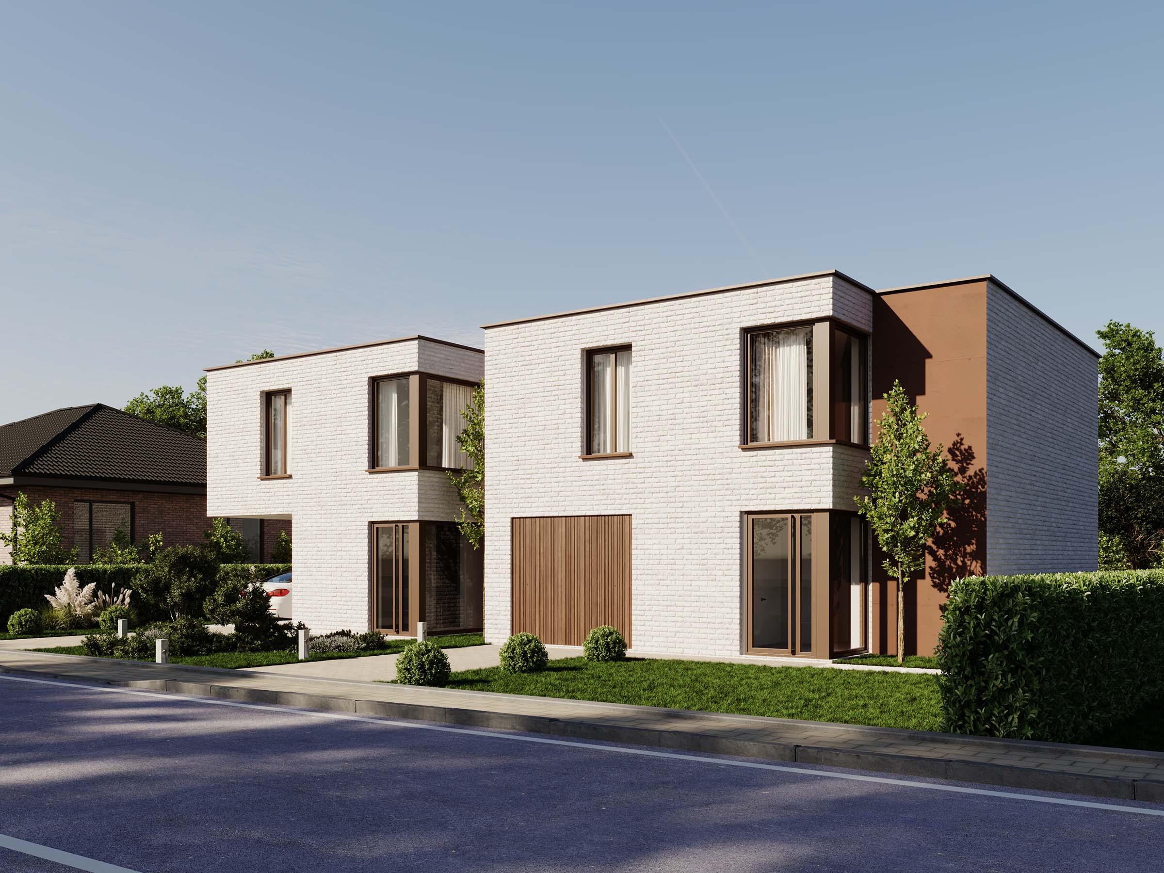 De woningen zijn ontworpen met een strakke, eigentijdse look, glaspartijen naar de tuin voor maximale lichtinval en een functionele indeling die inspeelt op het moderne gezinsleven.