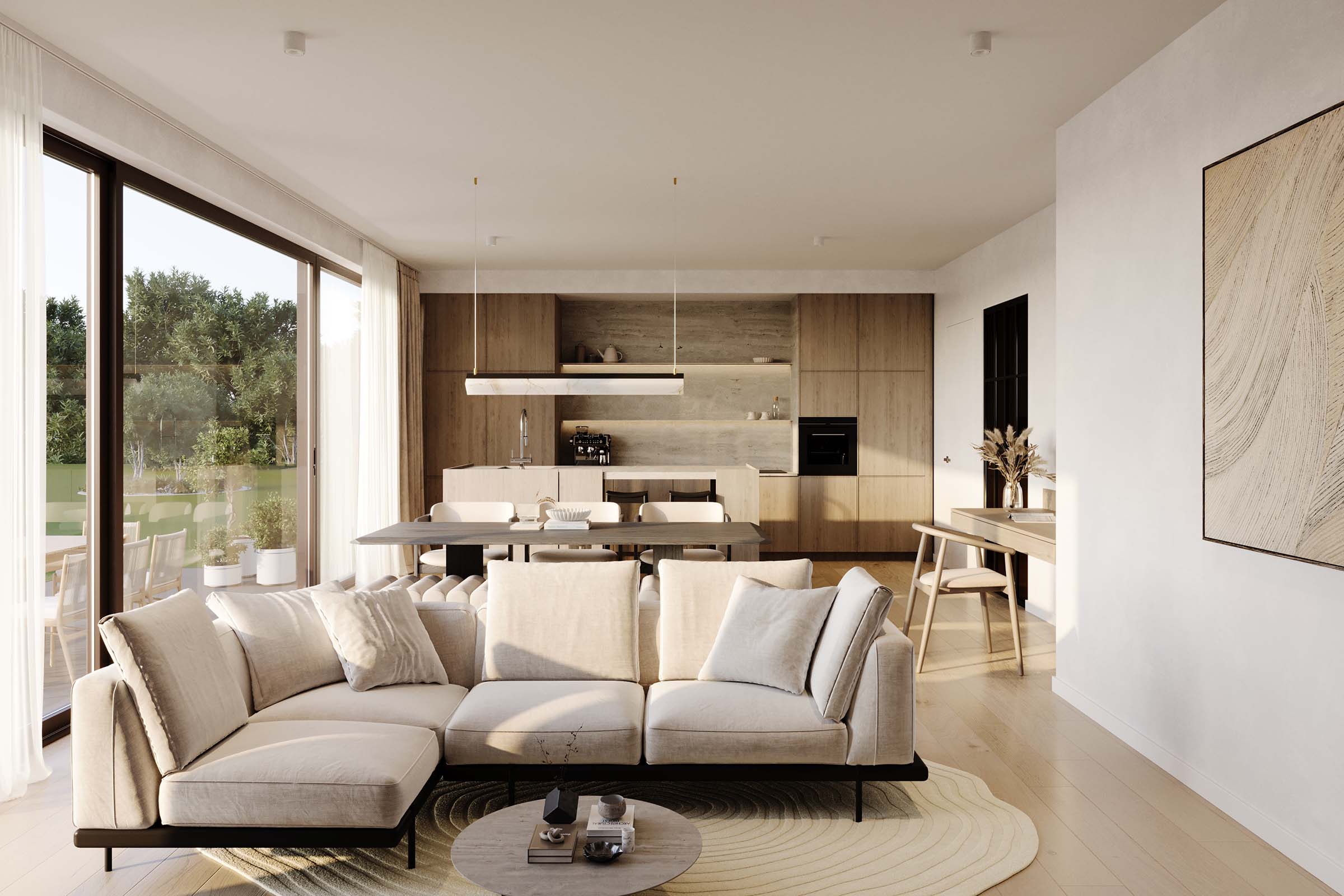 Dankzij de ruim voorziene afwerkingsbudgetten kan u de woning volledig inrichten volgens uw eigen stijl en smaak. Keuken, badkamer en materialen kiest u zelf, met professionele begeleiding.