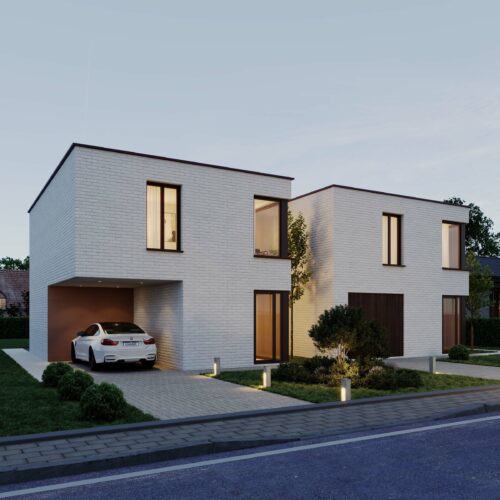 Woning 1 heeft een overdekte ruimte voorzien als carport. Hierdoor is je auto wat meer beschermd van de elementen. Bij Woning 2 is een extra ingebouwde garage voorzien om een auto te plaatsen of voor opslag van fietsen en allerlei. Voor de garage of carport heb je een ruime oprit voor eigen wagen of gasten die op bezoek komen.